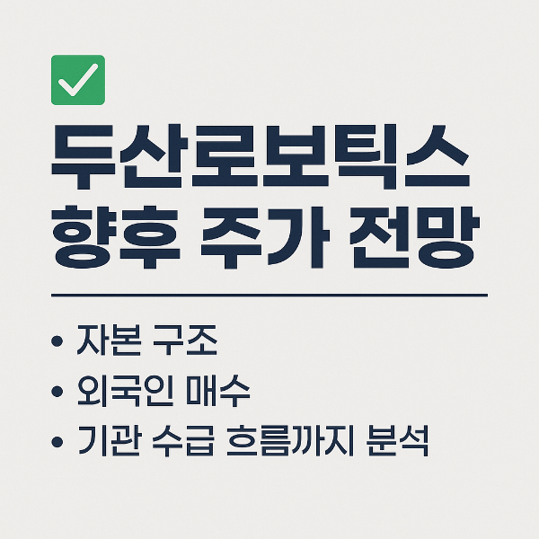 두산로보틱스는 여전히 유망한 기술 기반 기업입니다. 하지만 최근 실적 둔화와 외국인 수급 약세는 단기 주가 흐름에 부담 요인이 될 수 있습니다.